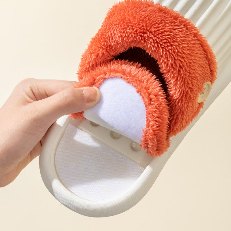 Stripe Slippers Detachable Washable House Shoes Fluffy Bedroom Slippers